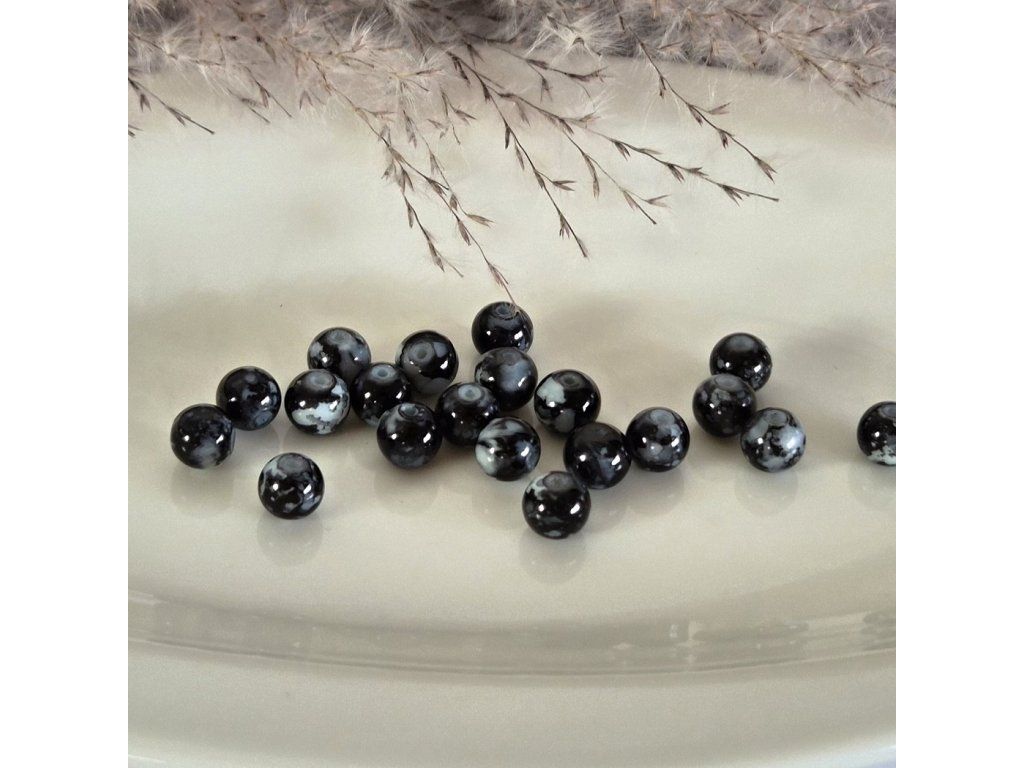 Skleněné korálky – černo-šedý mramorový efekt - ø 8 mm