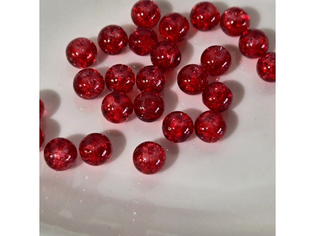 Skleněné korálky – červené s třpytivým efektem (8 mm)