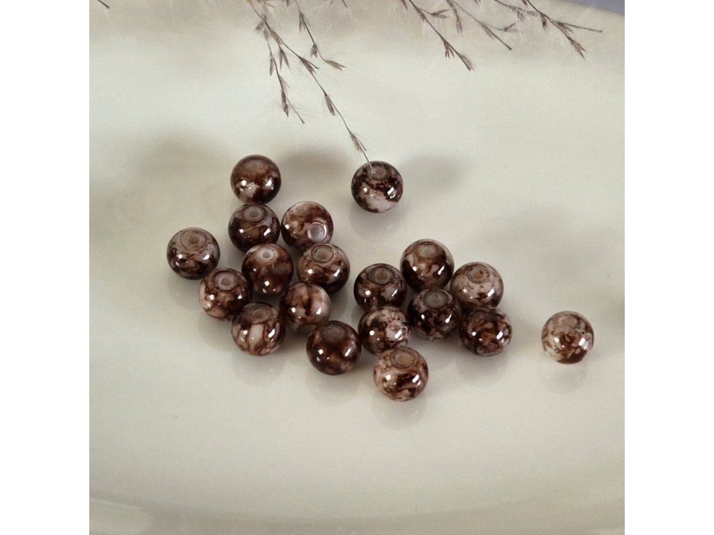 Skleněné korálky – hnědý mramorový efekt (8 mm)
