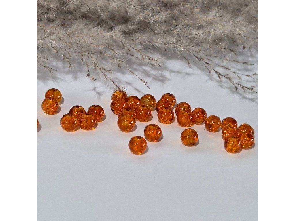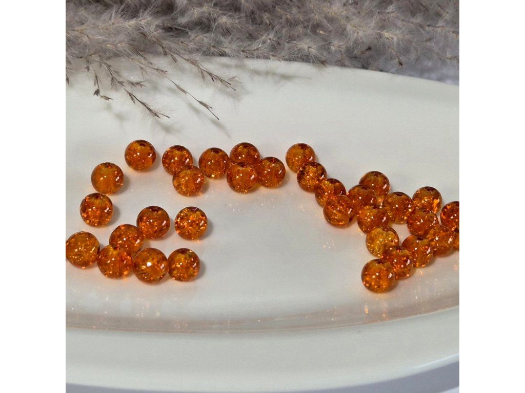 Skleněné korálky – oranžové s třpytivým efektem (8 mm)