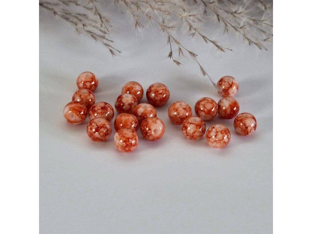 Skleněné korálky – oranžový mramorový efekt (8 mm)