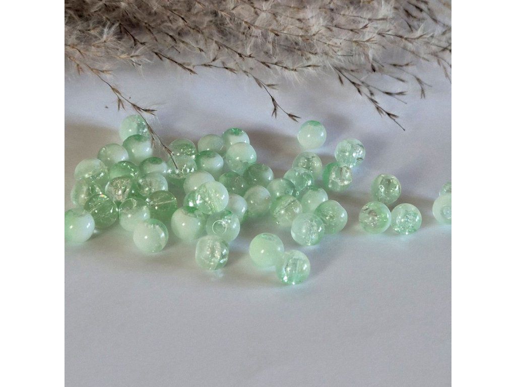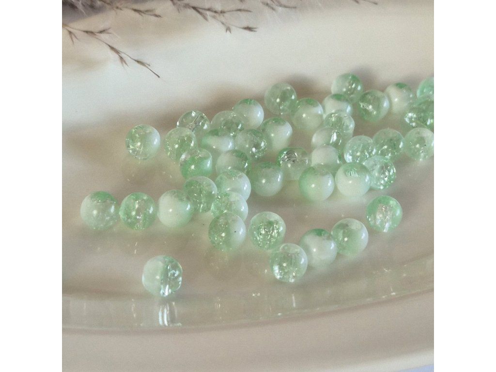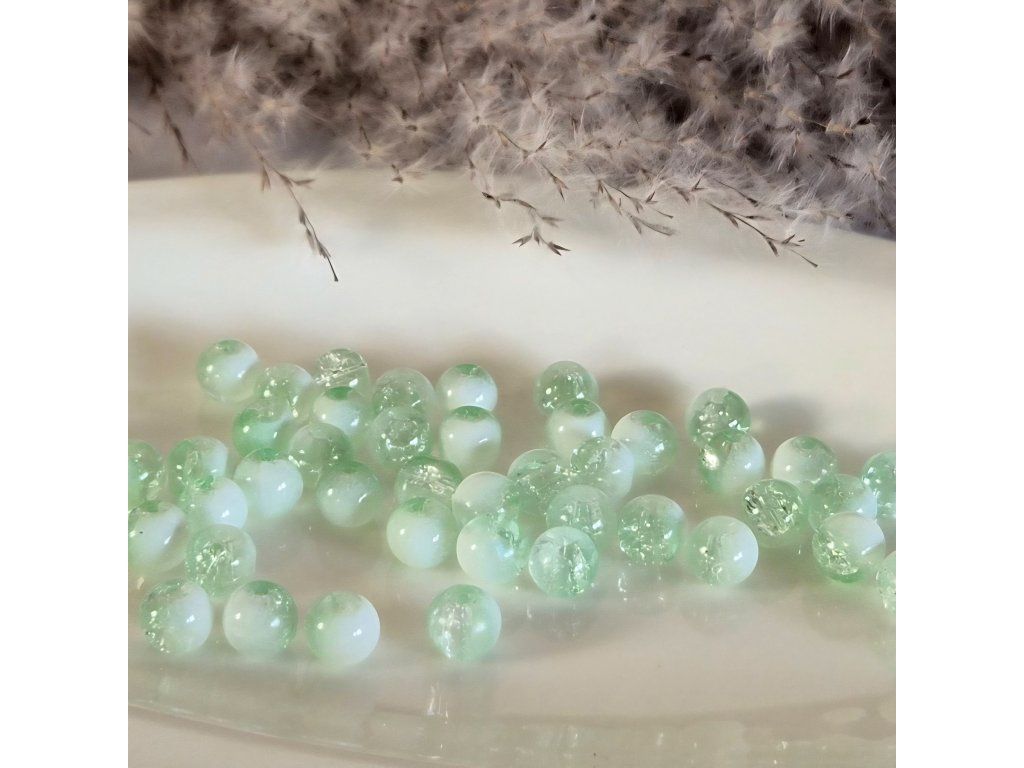 Skleněné korálky – polobílé glazované - světle zelená - ø 8 mm