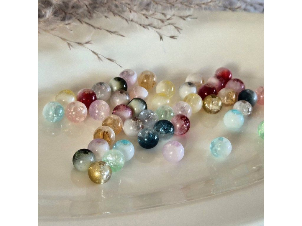 Originální skleněné korálky o průměru 8 mm v jemném pastelovém mixu barev. Kombinují poloprůsvitné, plné i crackle provedení, které vytváří zajímavou hru světla a barevných odlesků. Najdete zde tóny mintové, růžové, krémové, zlatavé, červené i tmavě zelené.