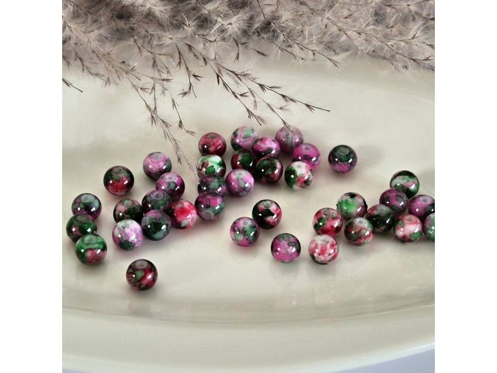 Skleněné korálky – růžovo-zelený mramorový efekt (8 mm)