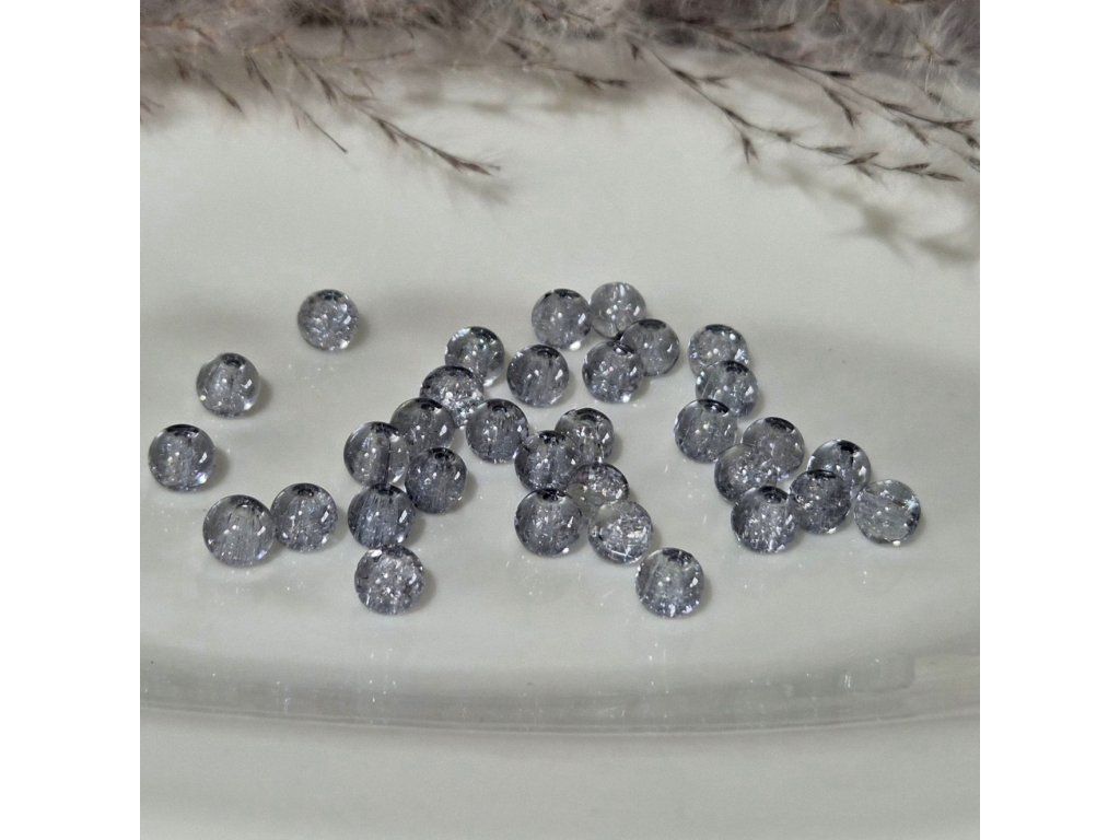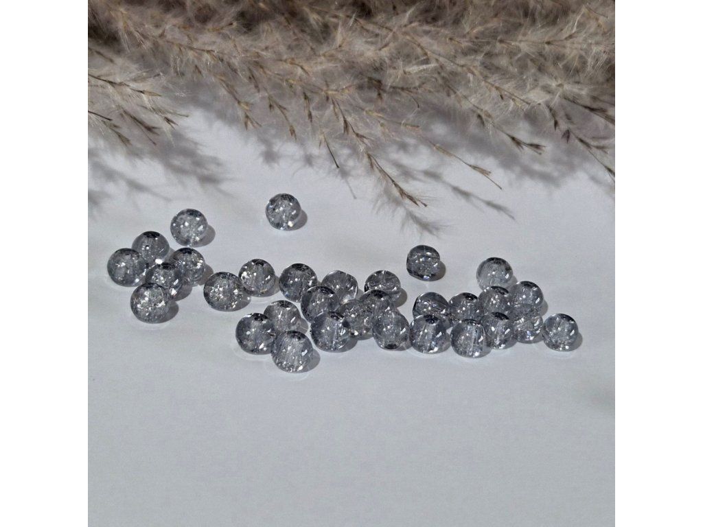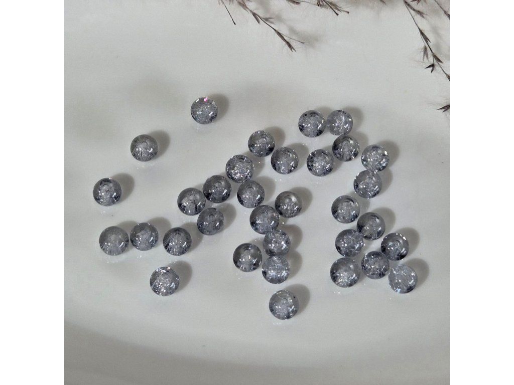 Skleněné korálky s praskajícím vzorem – šedé - ø 6 mm - 10 ks