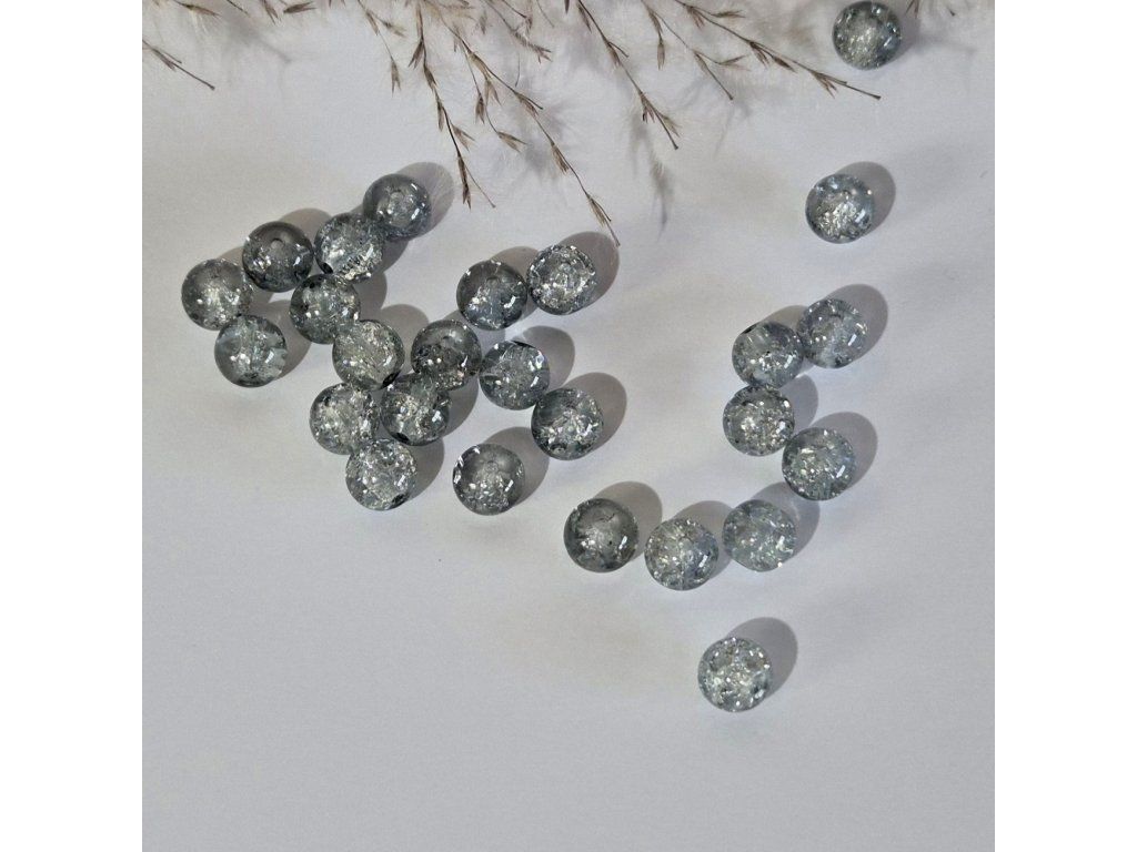 Skleněné korálky – šedé s třpytivým efektem (8 mm)