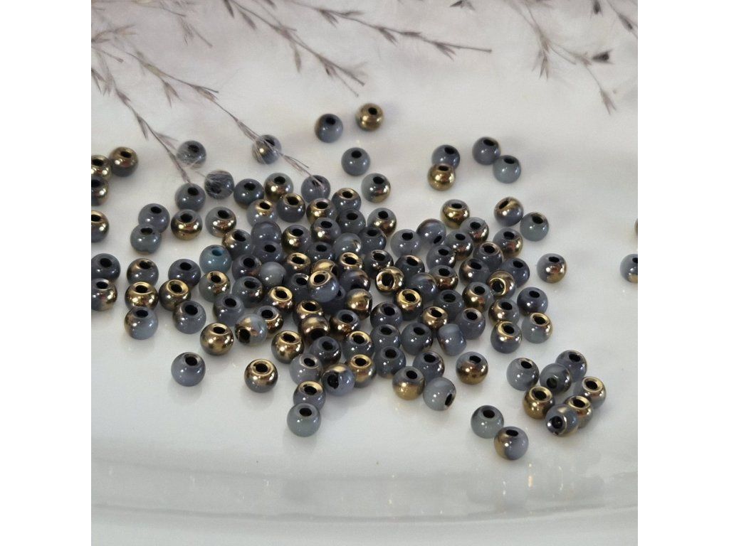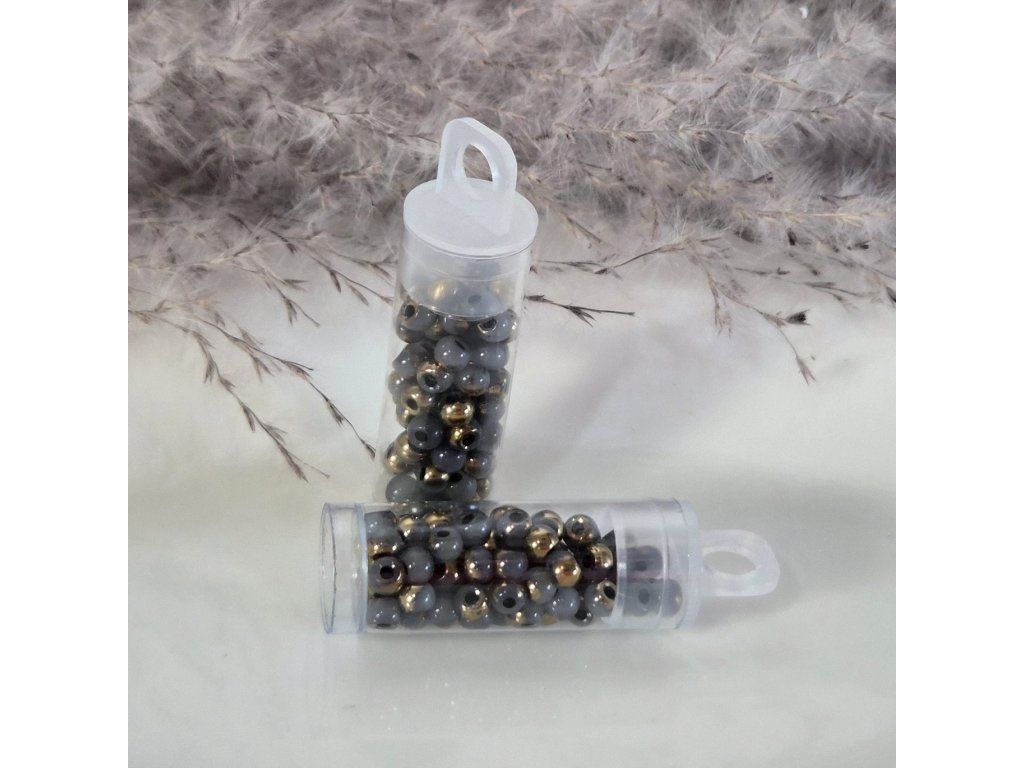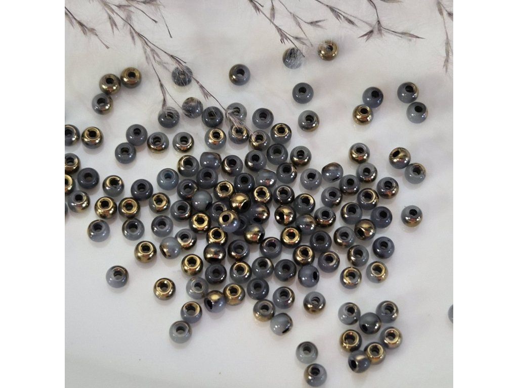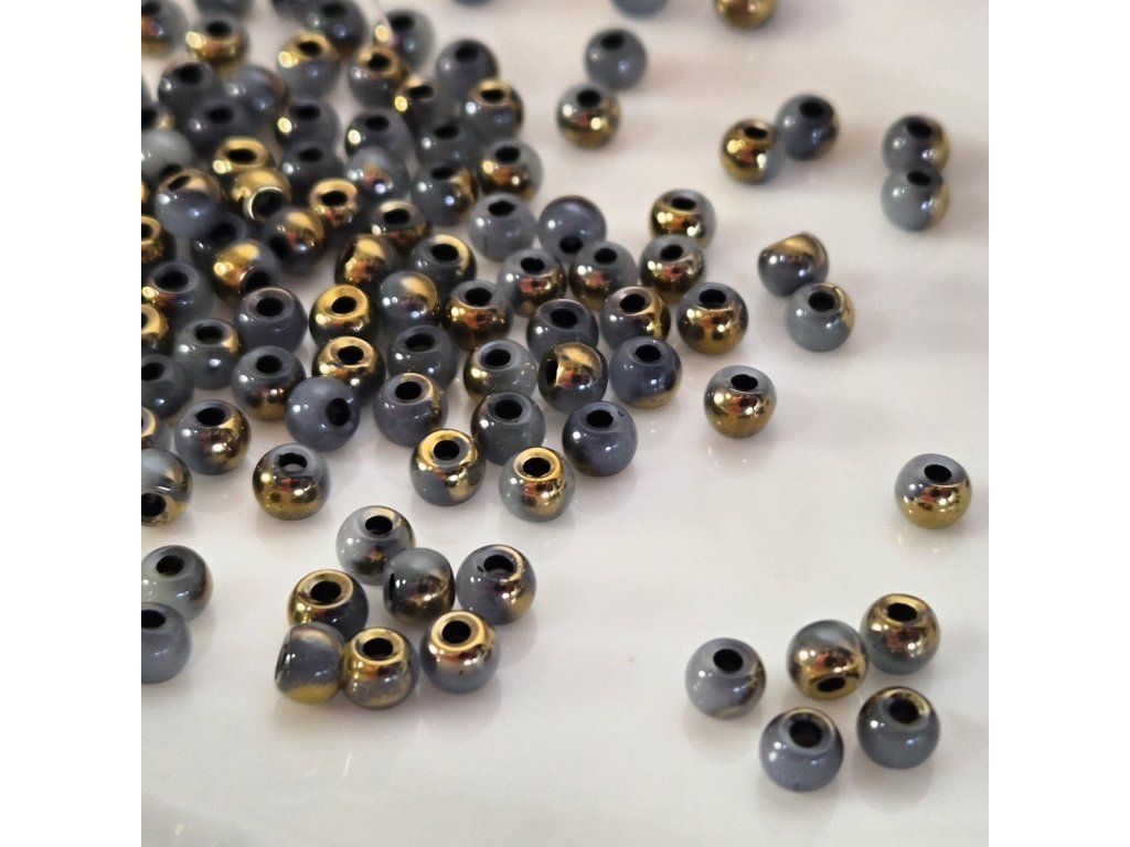 Elegantní skleněné rokajlové korálky v kombinaci jemné šedé a lesklého zlatého povrchu. Moderní barevné spojení působí luxusně a zároveň univerzálně – snadno je zkombinujete s dalšími materiály i barvami.