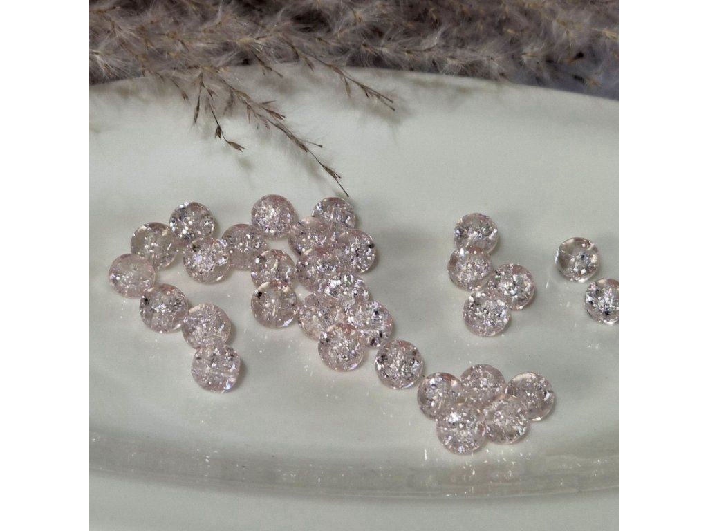 Skleněné korálky s praskajícím vzorem– světle růžové - ø 8 mm - 10 ks