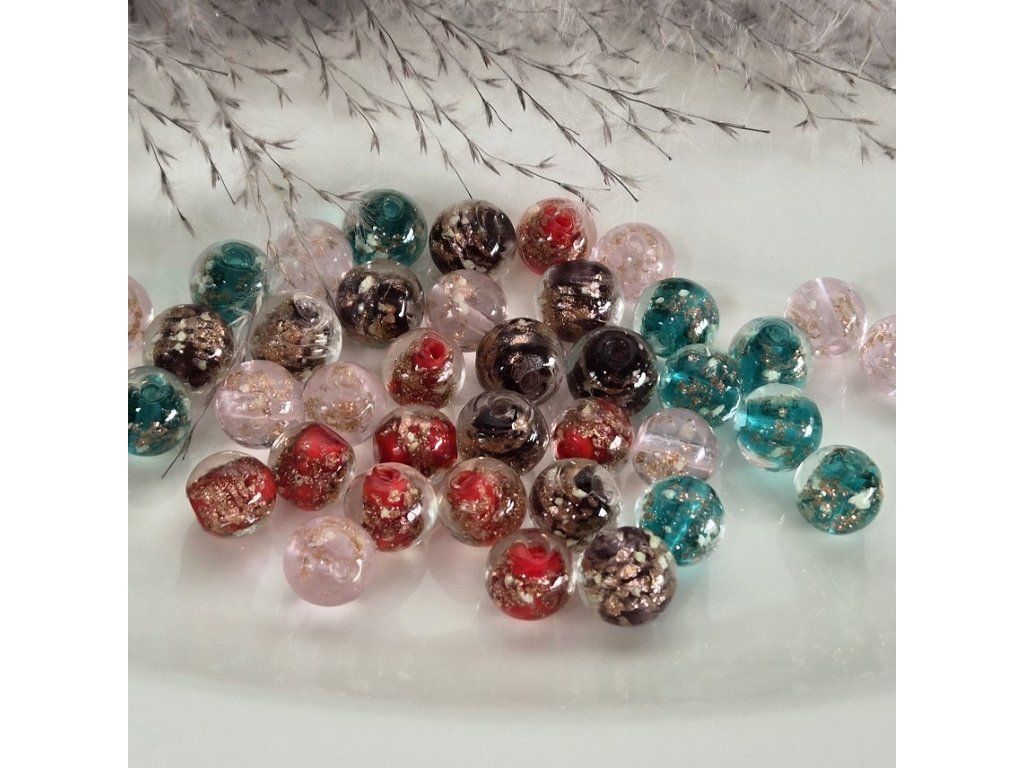 Každý korálek má unikátní kombinaci barev a třpytek.