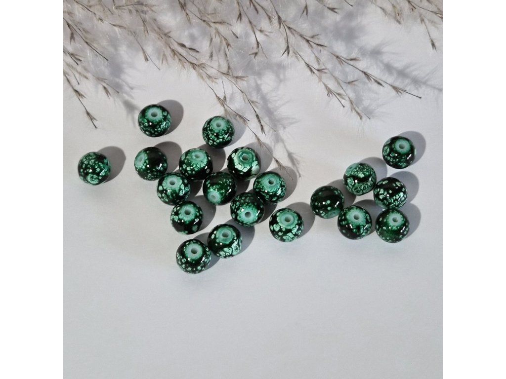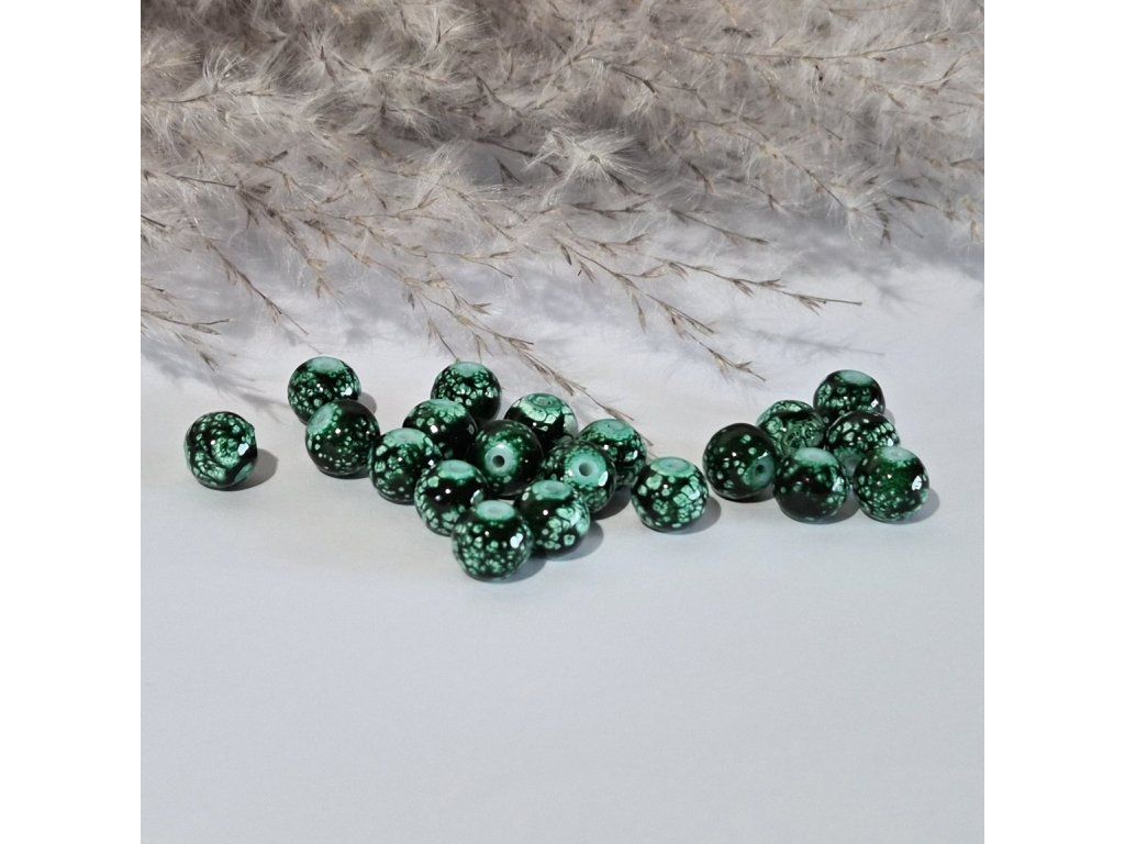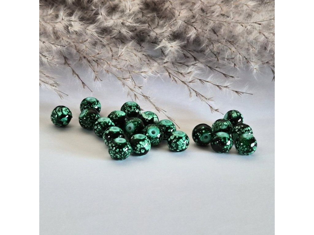 Skleněné korálky – tmavě zelené se světlejším mramorovým efektem - ø 8 mm - 10 ks