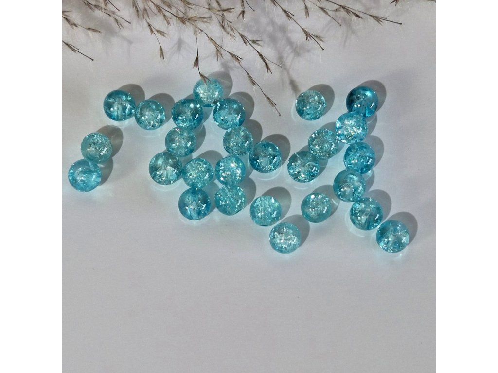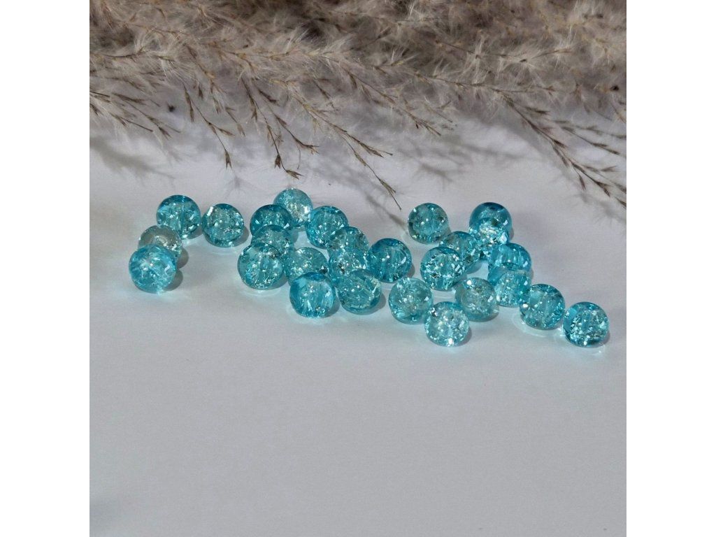 Skleněné korálky – tyrkysové s třpytivým efektem (8 mm)