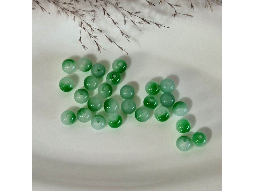 Skleněné korálky – zelené s mléčným přechodem (8 mm)