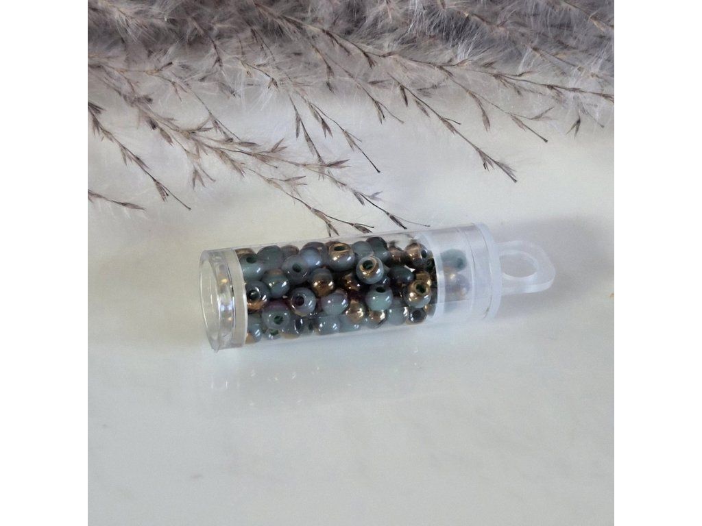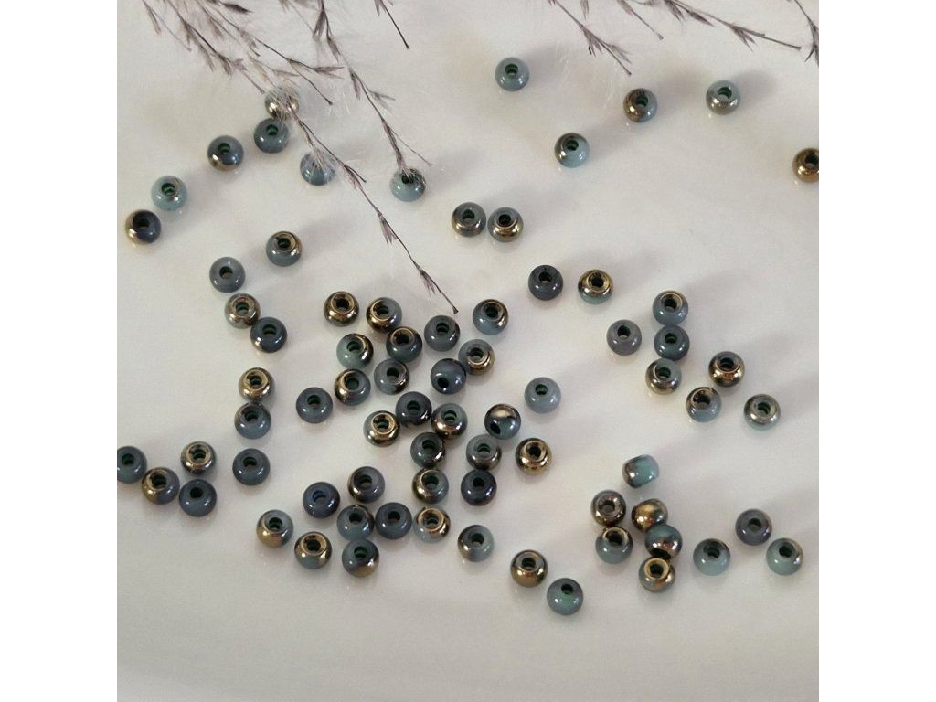 Skleněné korálky 6/0 (4 mm) – zeleno-šedo-zlaté