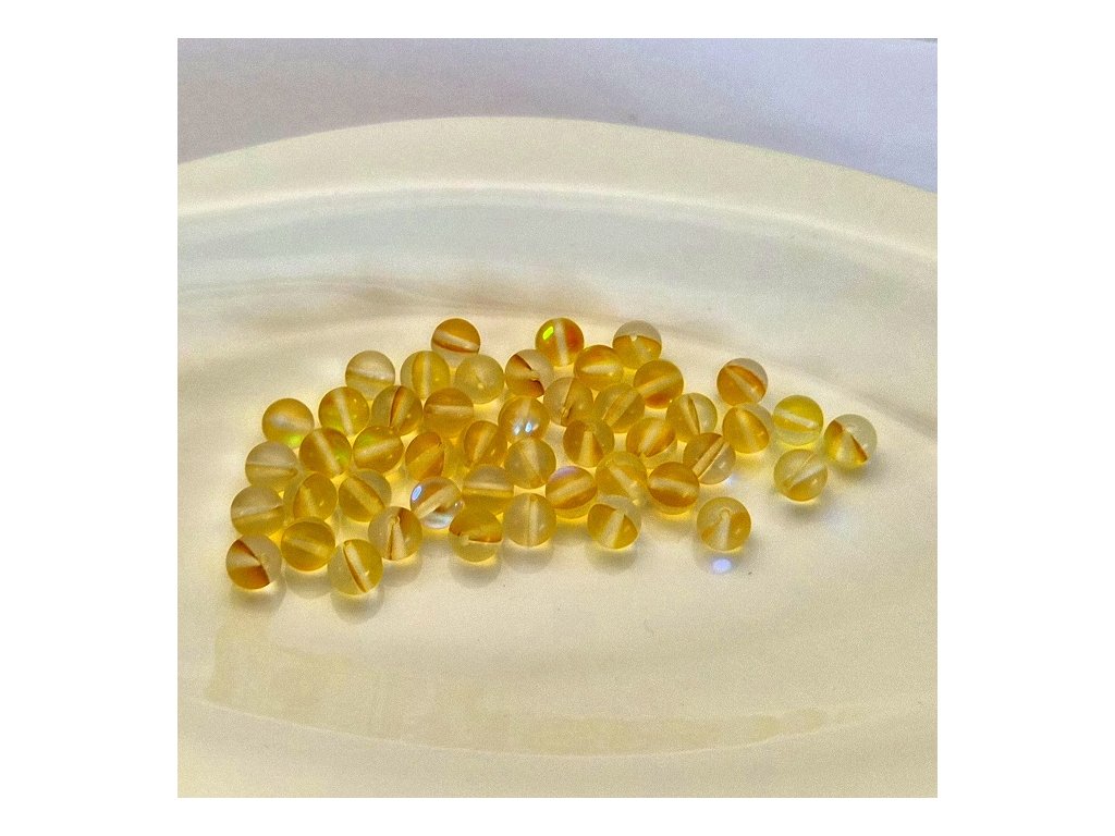 Zářivé korálky ze syntetického kočičího oka ve sytém medově žlutém až zlatavém odstínu. Typickým znakem je výrazný světelný pruh procházející středem korálku, který se při pohybu jemně posouvá a vytváří atraktivní optický efekt.