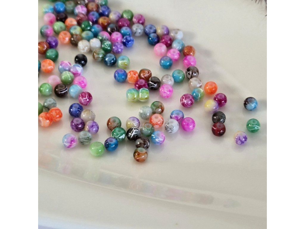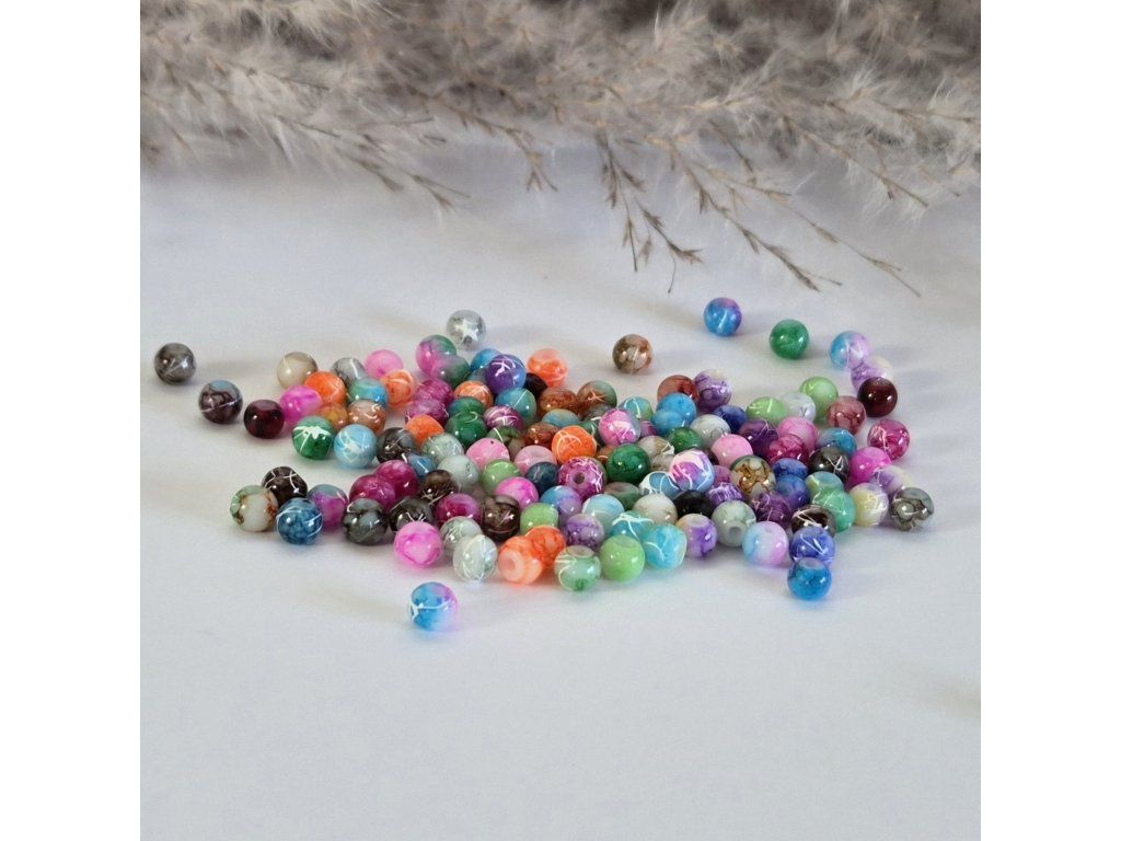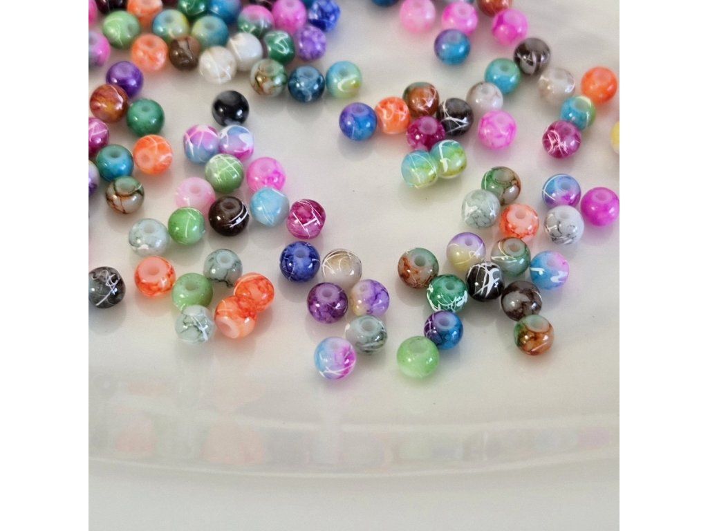 Skleněné korálky s keramickým vzorem – mix barev (4 mm)