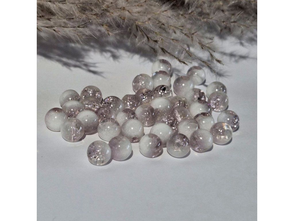 Skleněné korálky s praskajícím vzorem – bílo/čiré - ø 8 mm - 10 ks