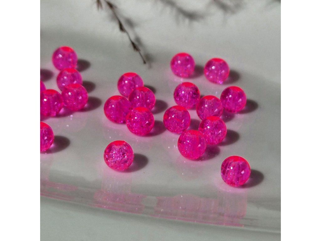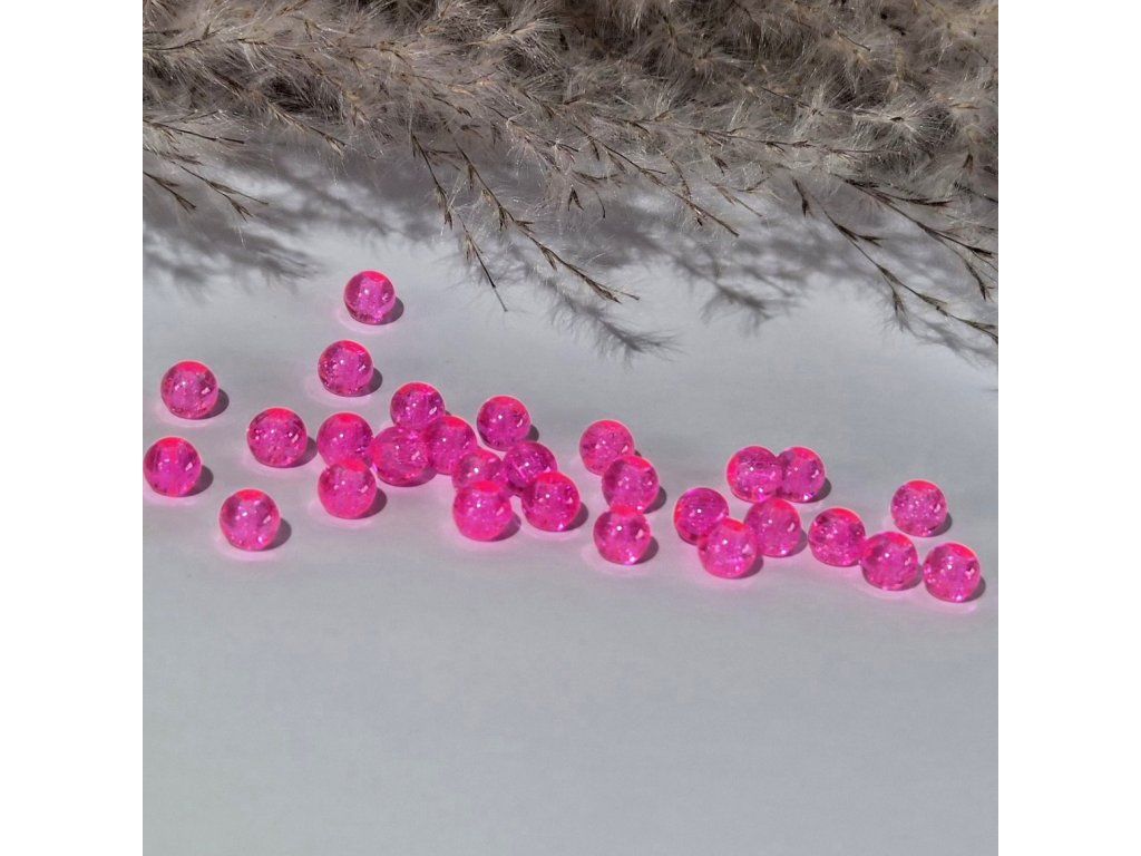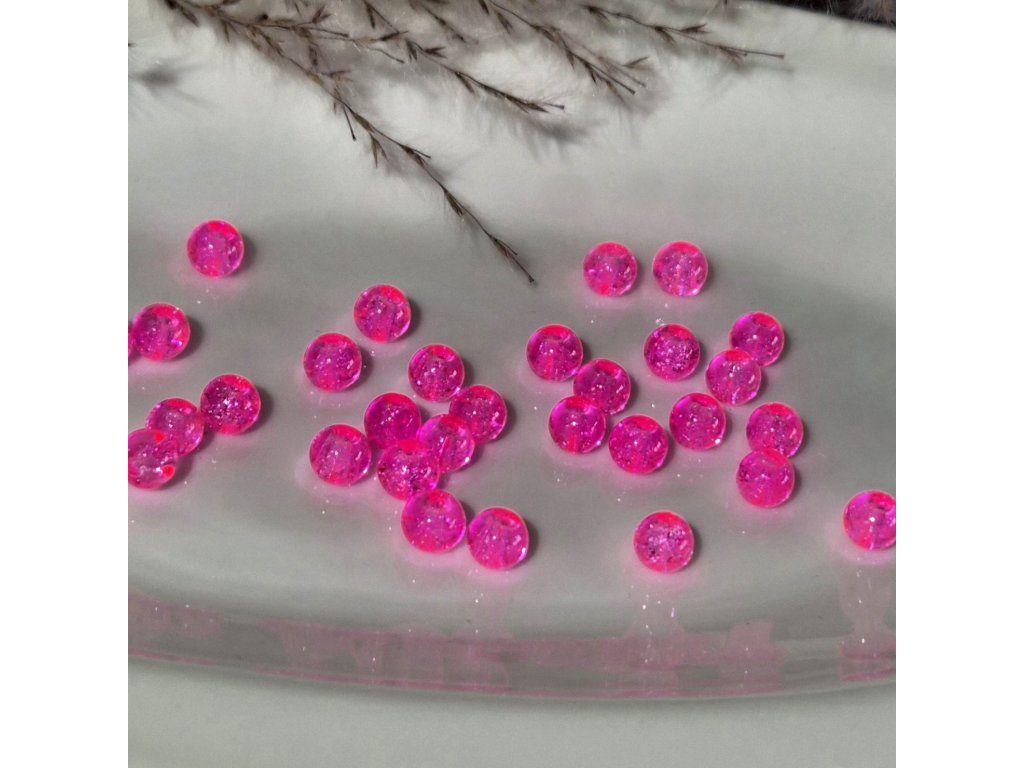 Skleněné praskající korálky – neon růžové (6 mm)