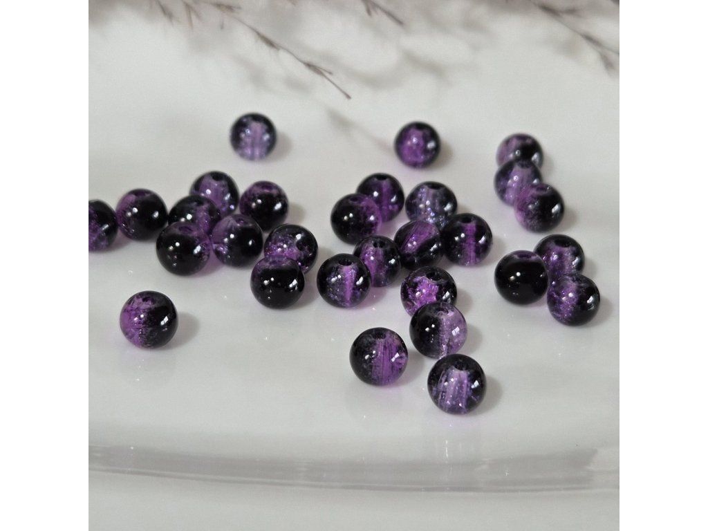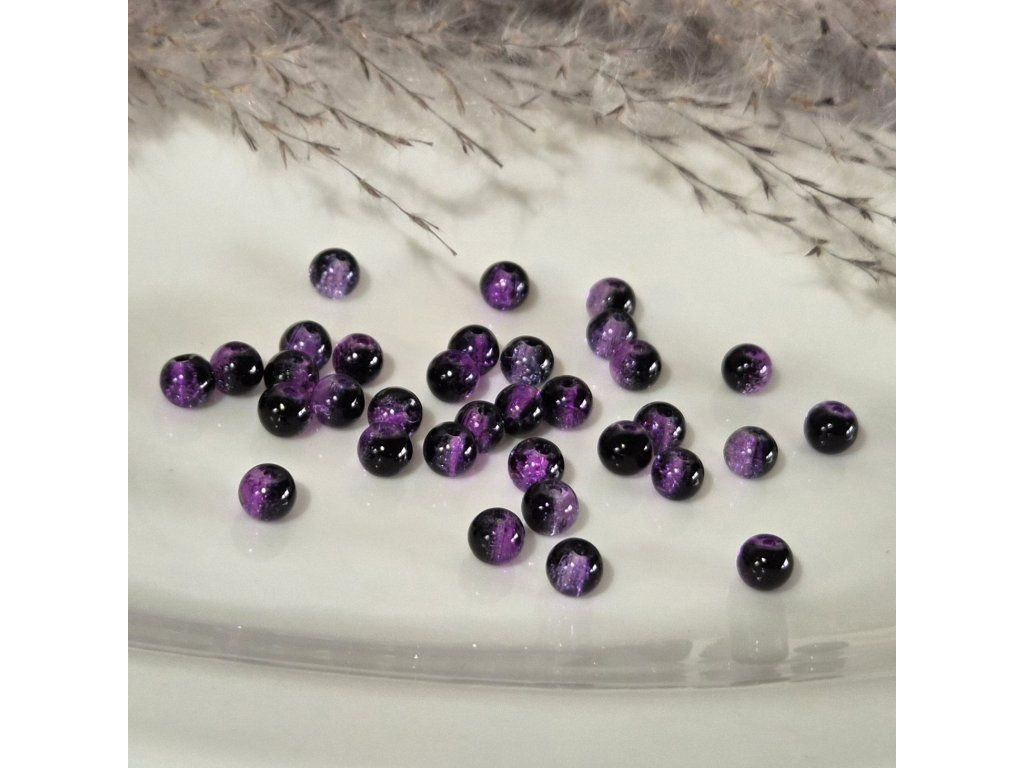 Skleněné korálky s praskajícím vzorem - černo/fialové - ø 6 mm - 10 ks