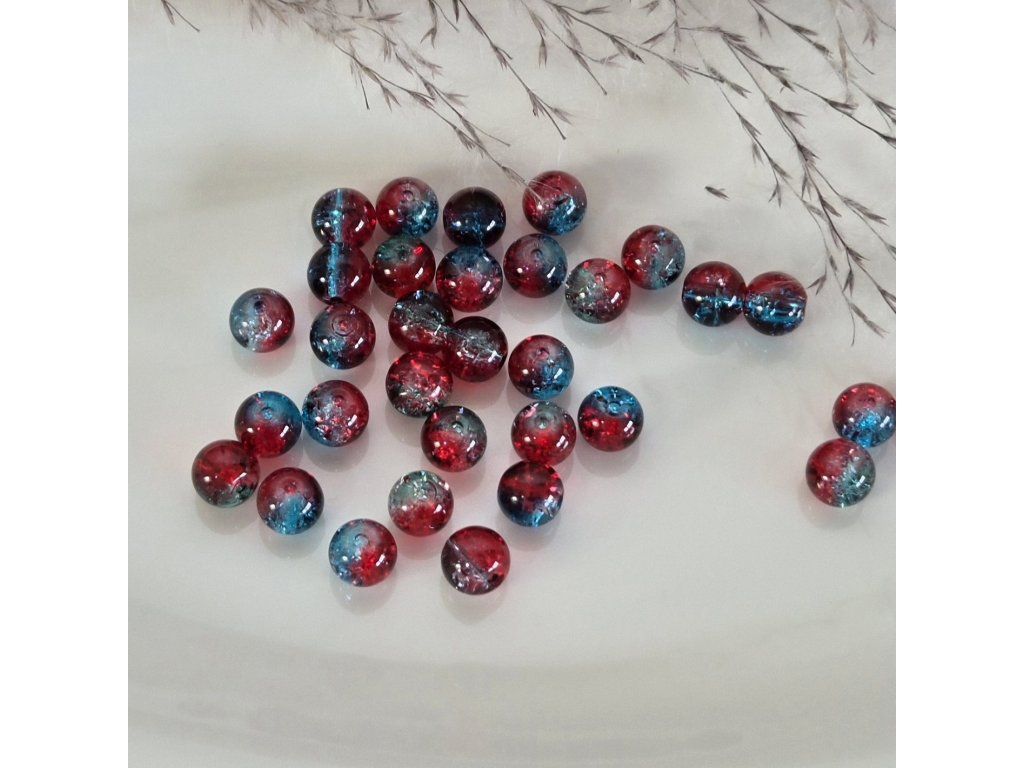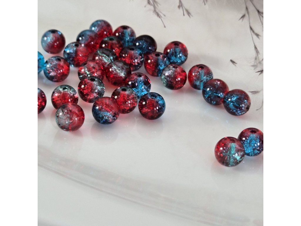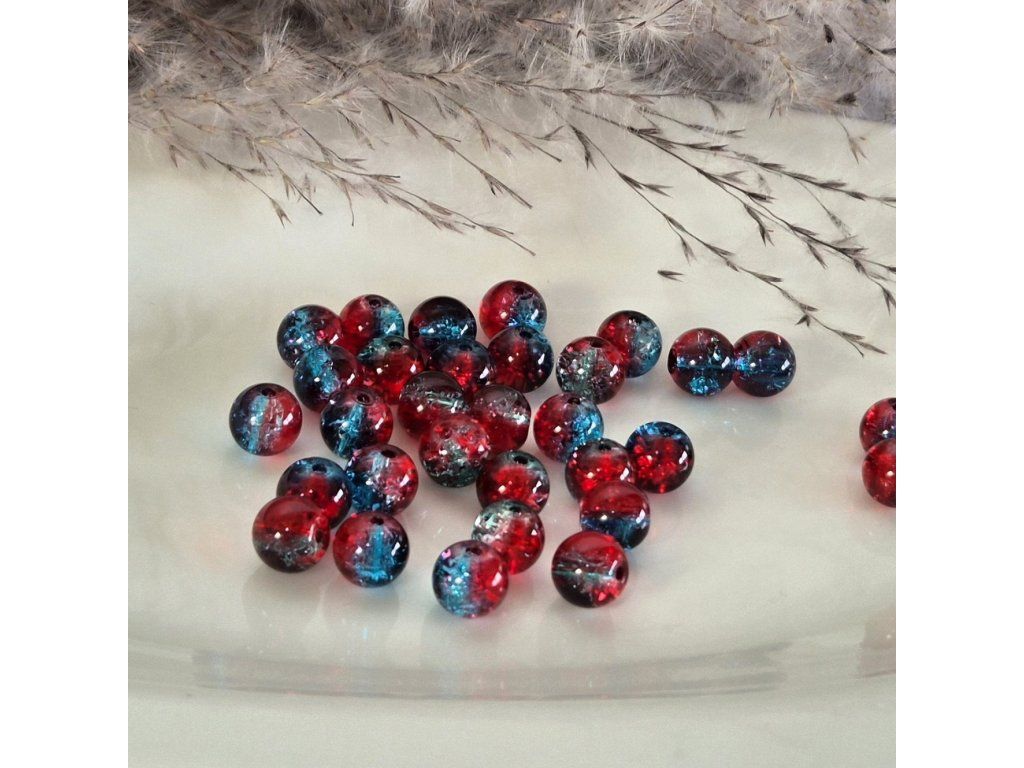 Výrazné skleněné korálky v kombinaci sytě červené a tyrkysově modré barvy s praskajícím (crackle) efektem, který dodává korálkům hloubku a intenzivní třpyt. Kontrastní barevné spojení působí moderně, energicky a velmi originálně.