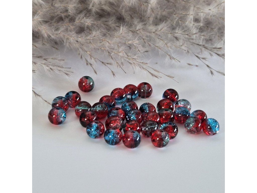 Skleněné korálky s praskajícím vzorem - červeno/tyrkysové - ø 8 mm - 1 ks