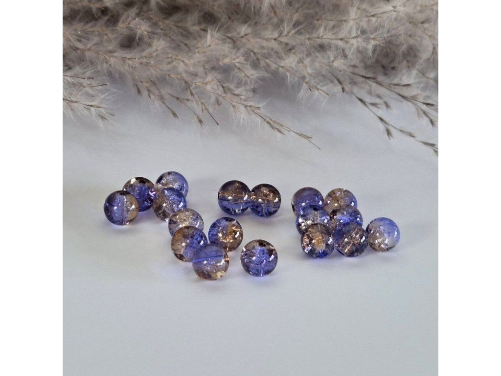 Elegantní skleněné korálky v kombinaci fialové a jemně hnědé barvy, doplněné o praskající (crackle) efekt, který vytváří zajímavou hru světla uvnitř korálku. Působí luxusně a lehce vintage.
