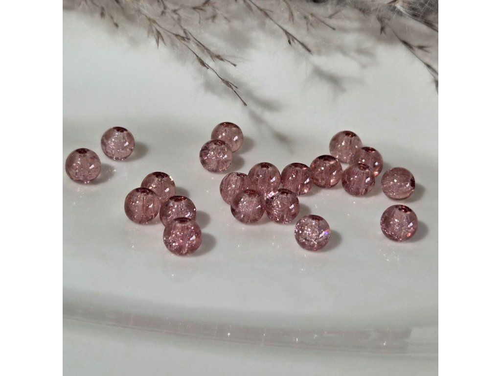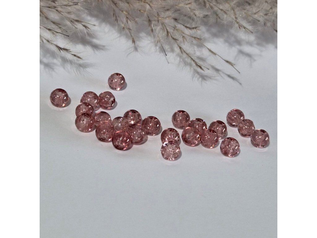 Skleněné korálky s praskajícím vzorem - starorůžové - ø 6 mm - 10 ks