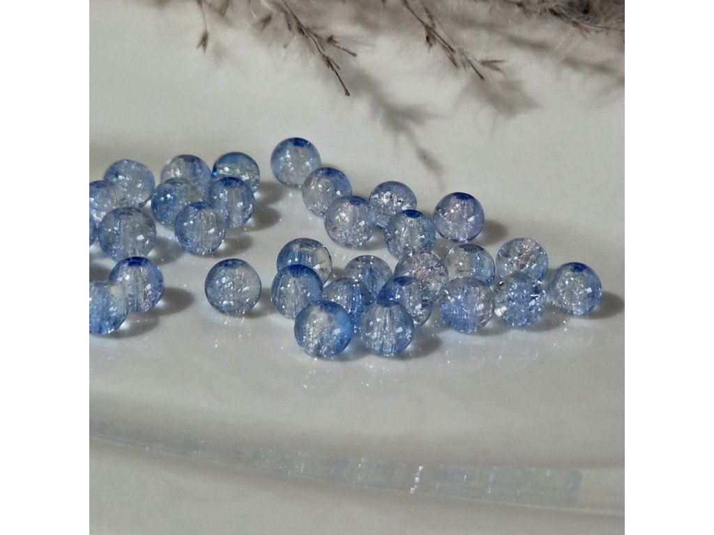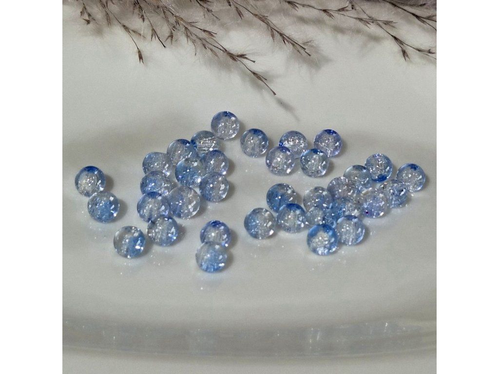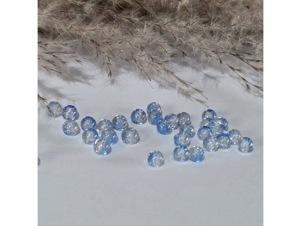 Skleněné praskající korálky – světle modré - čiré (6 mm)