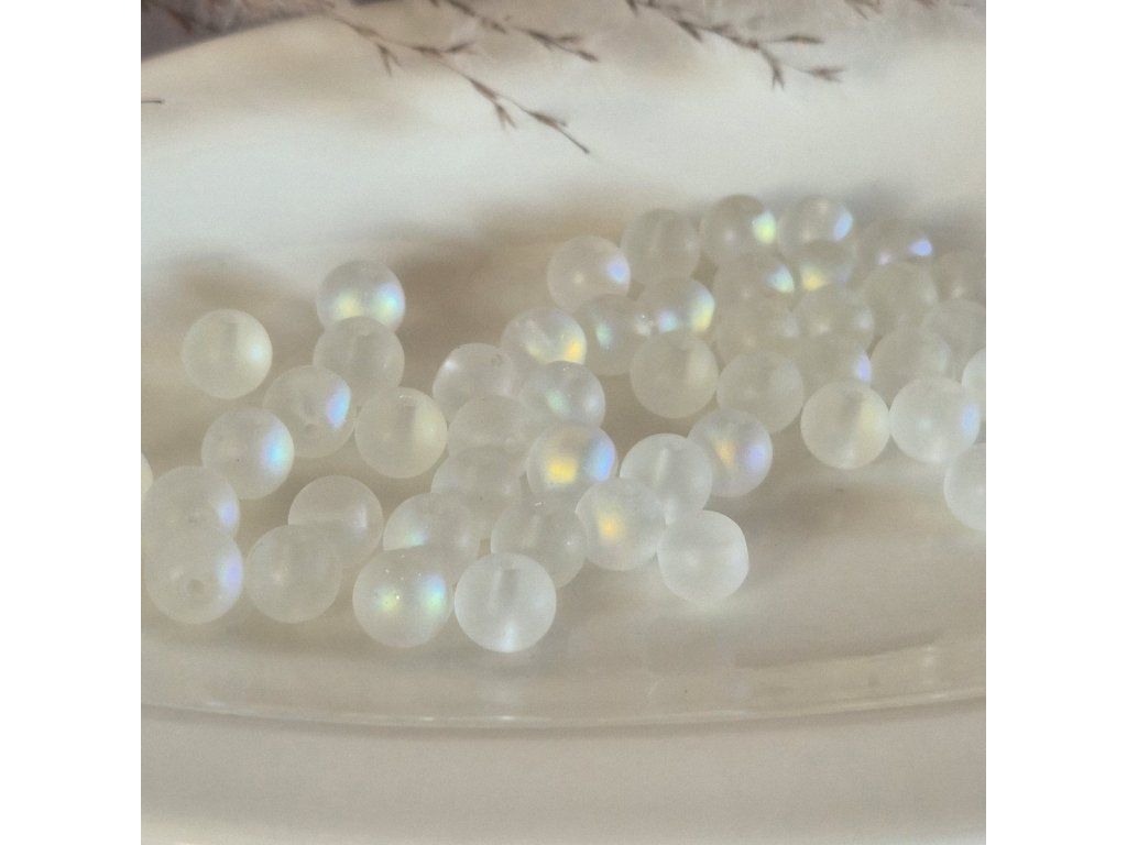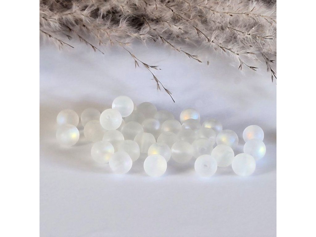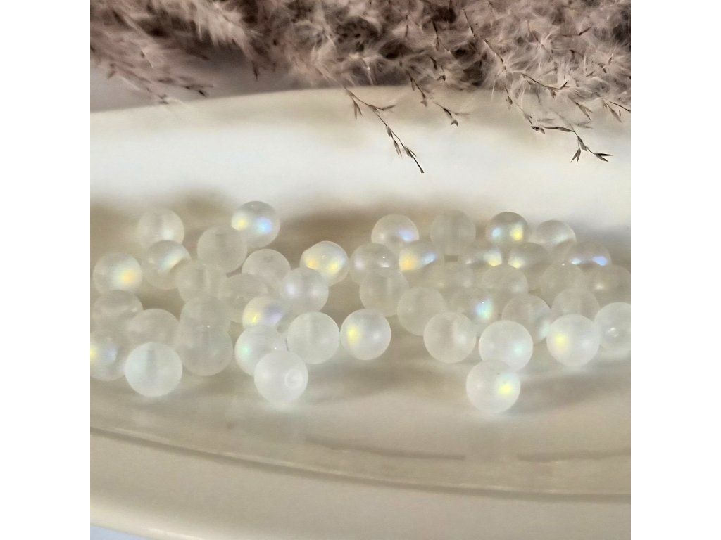 Skleněné korálky 8 mm – matné bílé s duhovým odleskem
