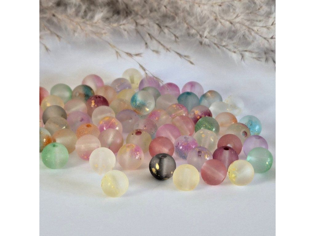 Matné skleněné korálky 8 mm – pastelový barevný mix