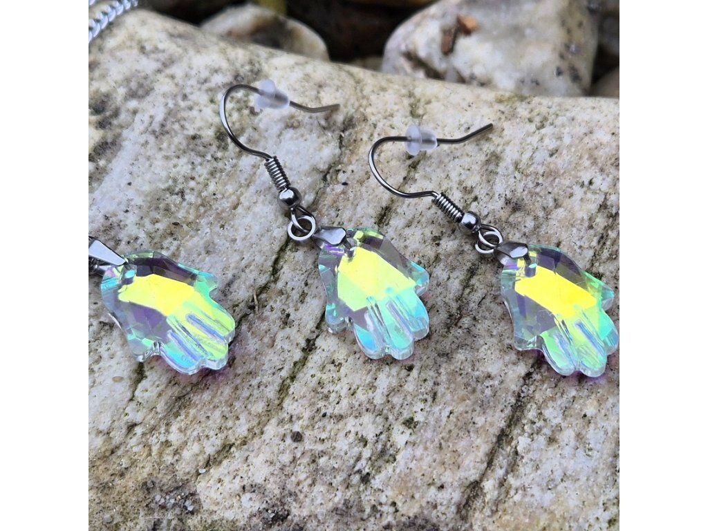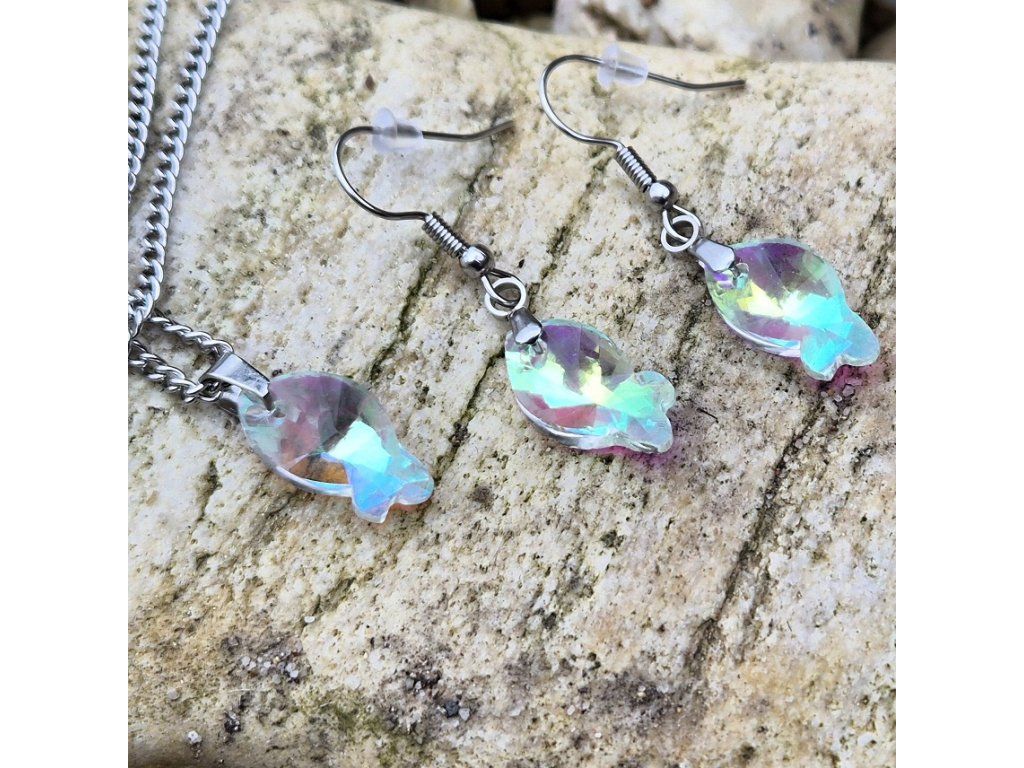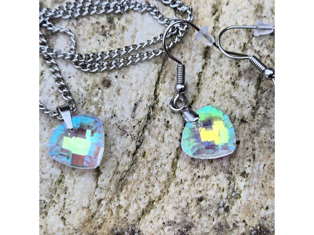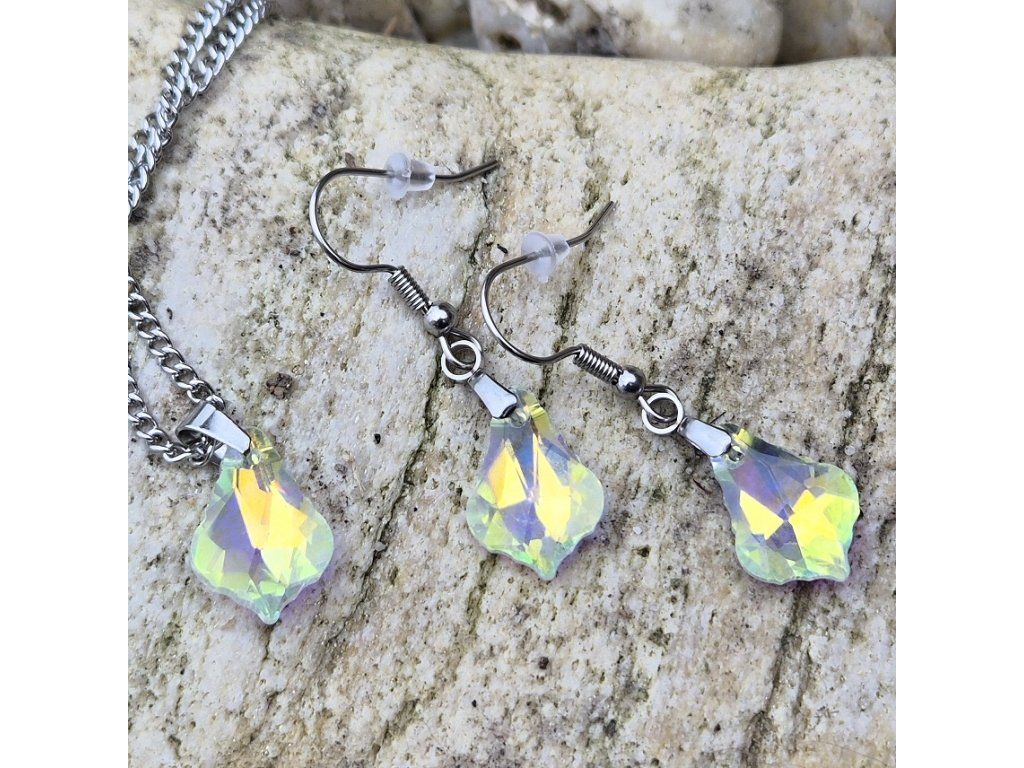 Šperkový set s křišťálovými přívěsky – jemný duhový třpyt
