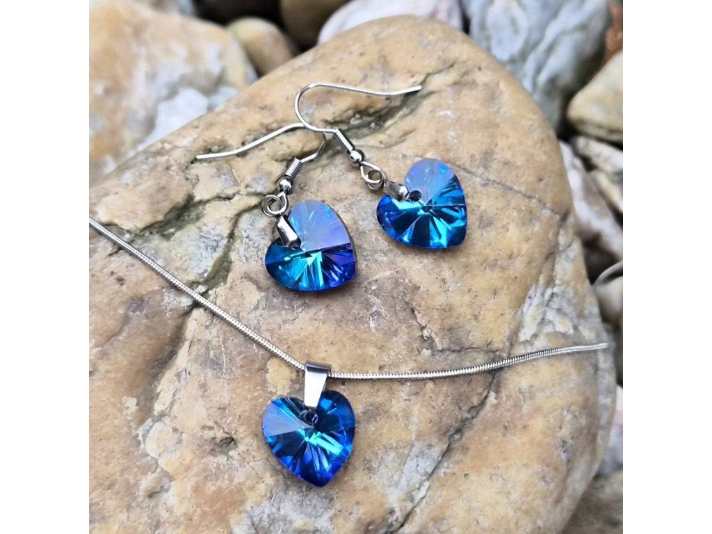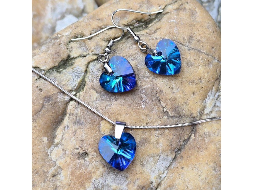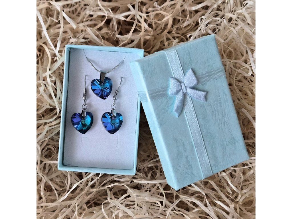 Šperkový set s krystalovým srdcem – modrý třpyt