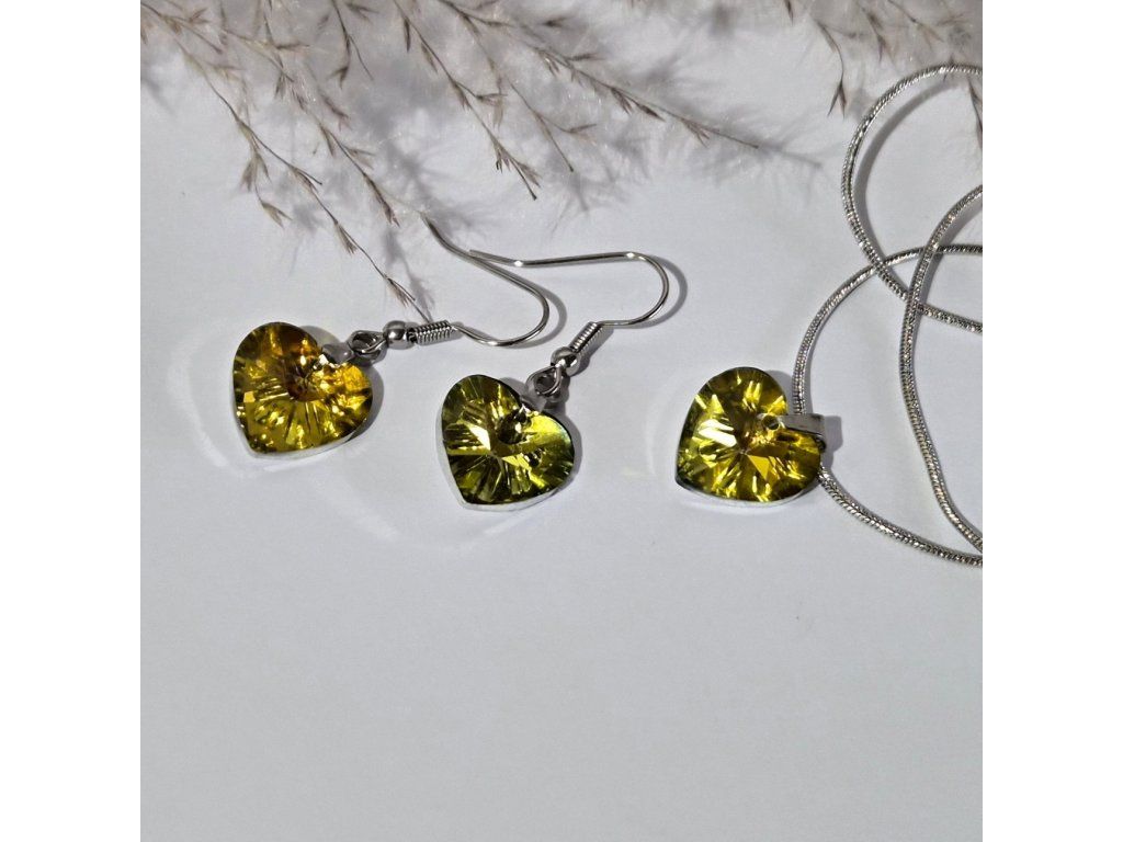 Náušnice a náhrdelník – srdce žlutý krystal