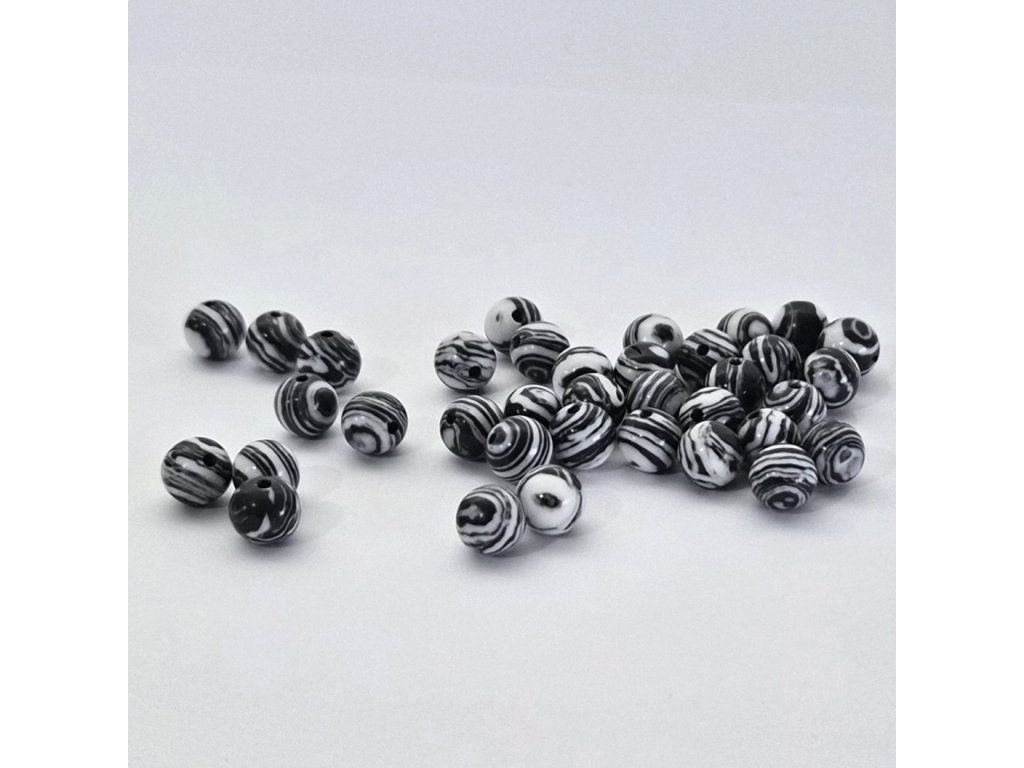 Černobílý syntetický malachit o průměru 8 mm je skvělou volbou pro výrazné, moderní a stylově čisté šperky.