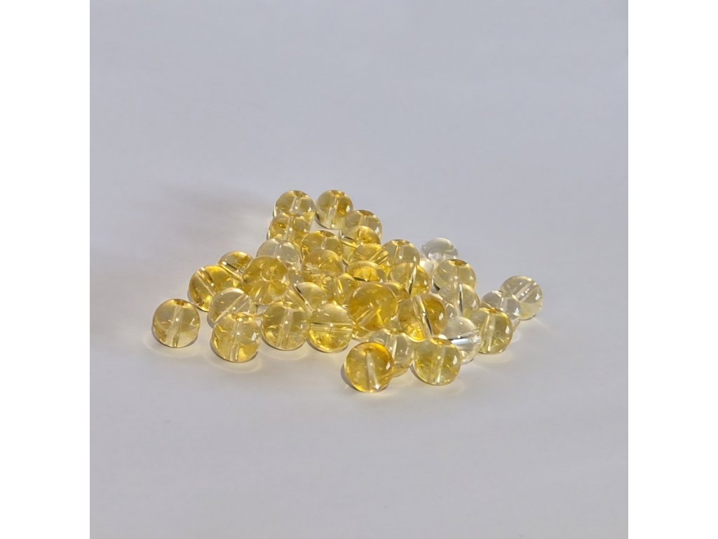 Leštěný povrch zvýrazňuje čistotu kamene a jeho přirozený lesk. Díky svěžímu žlutému tónu působí korálky lehce, pozitivně a velmi elegantně. Barevnost se může mírně lišit kus od kusu – od jemně pastelové po sytější zlatavou.